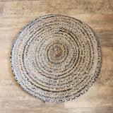 Round Jute and Recycle Denim Rug- 90 cm